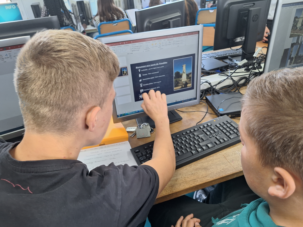 Pour conclure leur étude de la Première Guerre mondiale, les élèves des classes de 3ème A, C et D ont réalisé des travaux de groupe qui les ont amenés à s’intéresser à leurs communes : les monuments aux morts porteurs de symboles et des soldats, souvent très jeunes et qui sont “morts pour la France”.