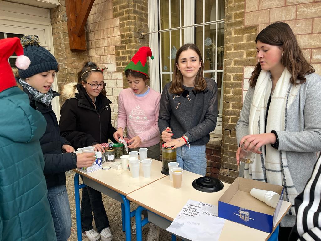 Pour leur dernier jour de classe avant les congés de fin d’année, tous les élèves du collège ont participé au Marché de Noël organisé par l’Association des Parents d’élèves ainsi qu’à divers ateliers de Noël animés par leurs professeurs : théâtre d’improvisation ; loteria de Navidad ; Noël en musique ; Scratch et le Père Noël ; Pictionary ; échecs ; Conte de Noël ; blind test ; Christmas in England ; doublage de films ; activités sportives ; Votre plus beau pull de Noël ; loto des maths ; loup-garou, etc.