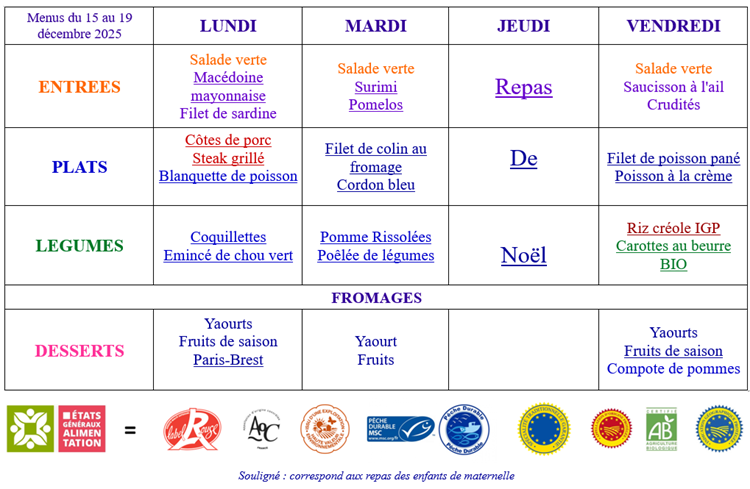 La qualité du service de restauration a été reconnue par les services de l’Etat :
